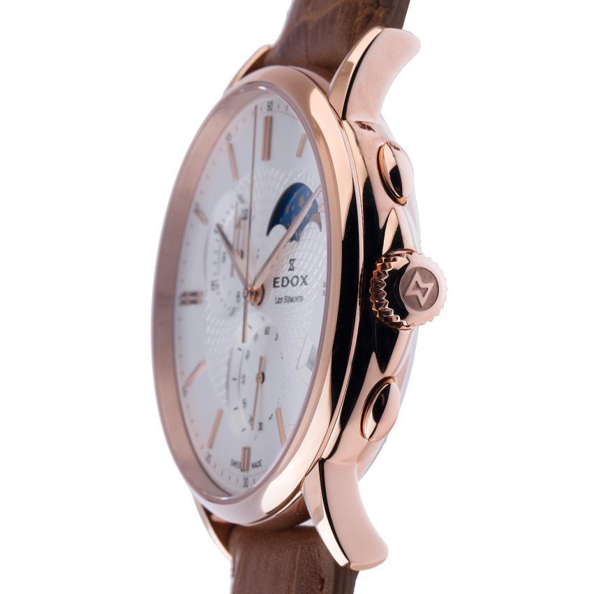 این مدل از مجموعه مشهور Les Bémonts برند Edox، نه تنها به طراحی زیبا توجه دارد، بلکه از لحاظ فنی نیز کاملاً قابل اعتماد است. موتور کوارتز آن عملکرد دقیق و بدون دردسر ارائه میدهد، و شیشه یاقوت کبود ضدخش، مقاومت و دوام بالایی به ساعت میبخشد. علاوه بر نمایش ساعت، قابلیت تقویم روز ماه و نشانگر فاز ماه، کارکردی جذاب و کاربردی به آن اضافه کرده است. کیفیت بالای استیل ضد زنگ و پوشش PVD رزگلد، در کنار بند چرمی مرغوب، حس یک ساعت لوکس واقعی را منتقل میکند.