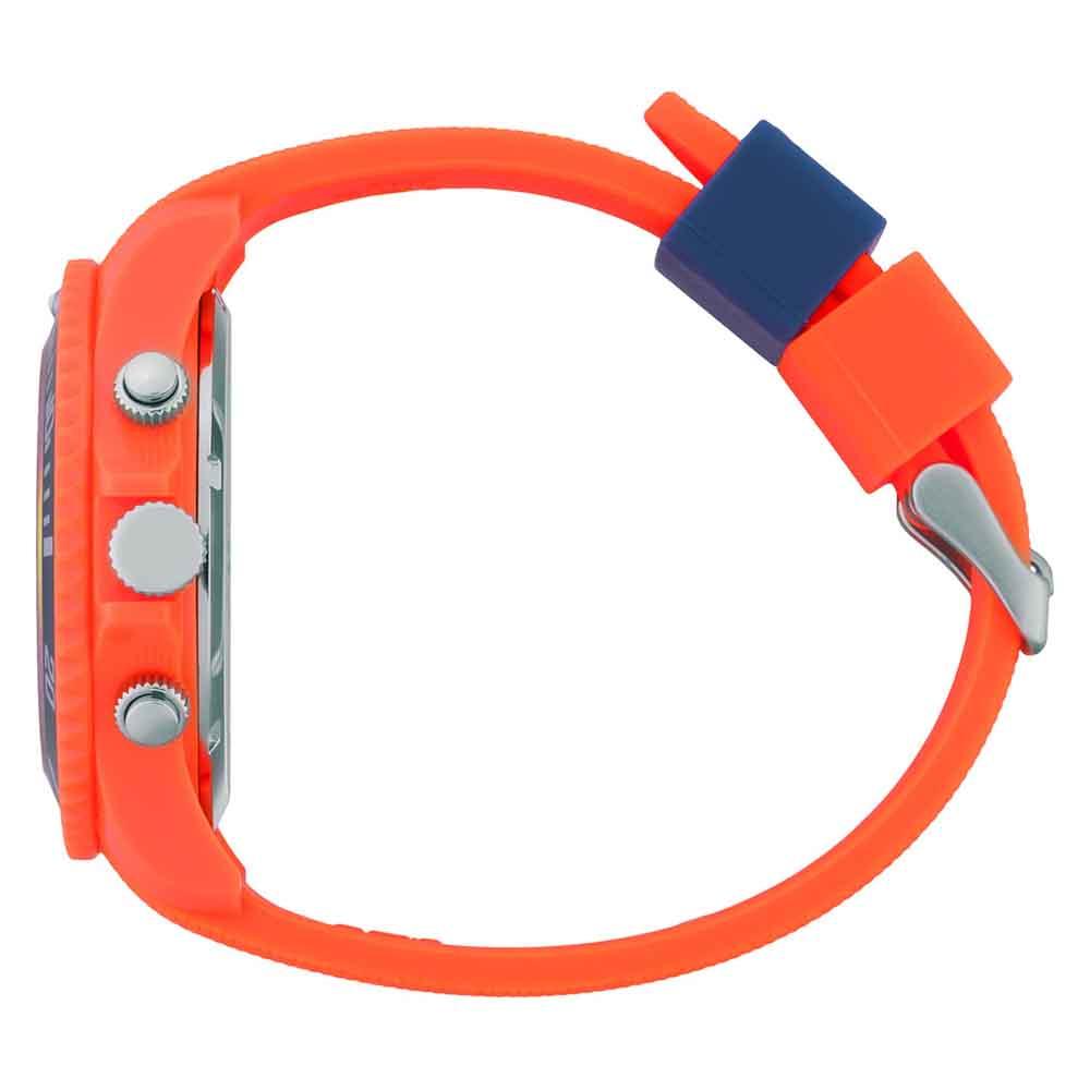 ساعت مچی مردانه آیس مدل 019841 دارای بدنهای از جنس رزین است که به دلیل مقاومت بالا در برابر ضربه و خش، دوام فوقالعادهای را ارائه میدهد. قاب این ساعت به رنگ نارنجی است که در ترکیب با صفحه نمایش آبی، جلوهای خاص و جذاب به آن میبخشد. قطر قاب این ساعت 44 میلیمتر و ضخامت آن 13 میلیمتر است که باعث میشود ساعت روی مچ دست جلوهای بزرگ و برجسته داشته باشد.