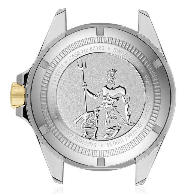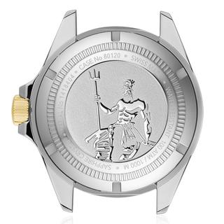 ساعت Edox Neptunian Automatic 80120357JMNID یک شاهکار مهندسی سوئیسی است که طراحی آن بر اساس اصول غواصی حرفهای و عملکرد دقیق ساخته شده است. قاب فولادی ضدزنگ با پوشش PVD دو رنگ، با قطر 44 میلیمتر و ضخامت متناسب، ترکیبی از استحکام و حضور قدرتمند روی مچ ایجاد میکند. مقاومت خارقالعاده تا ۱۰۰۰ متر (۱۰۰ ATM) و دریچه هلیوم (Helium Escape Valve) تضمین میکند که این ساعت حتی در شدیدترین فشارهای آب نیز عملکردی بیوقفه دارد، ویژگیای که آن را به گزینهای ایدهآل برای غواصان حرفهای تبدیل میکند.