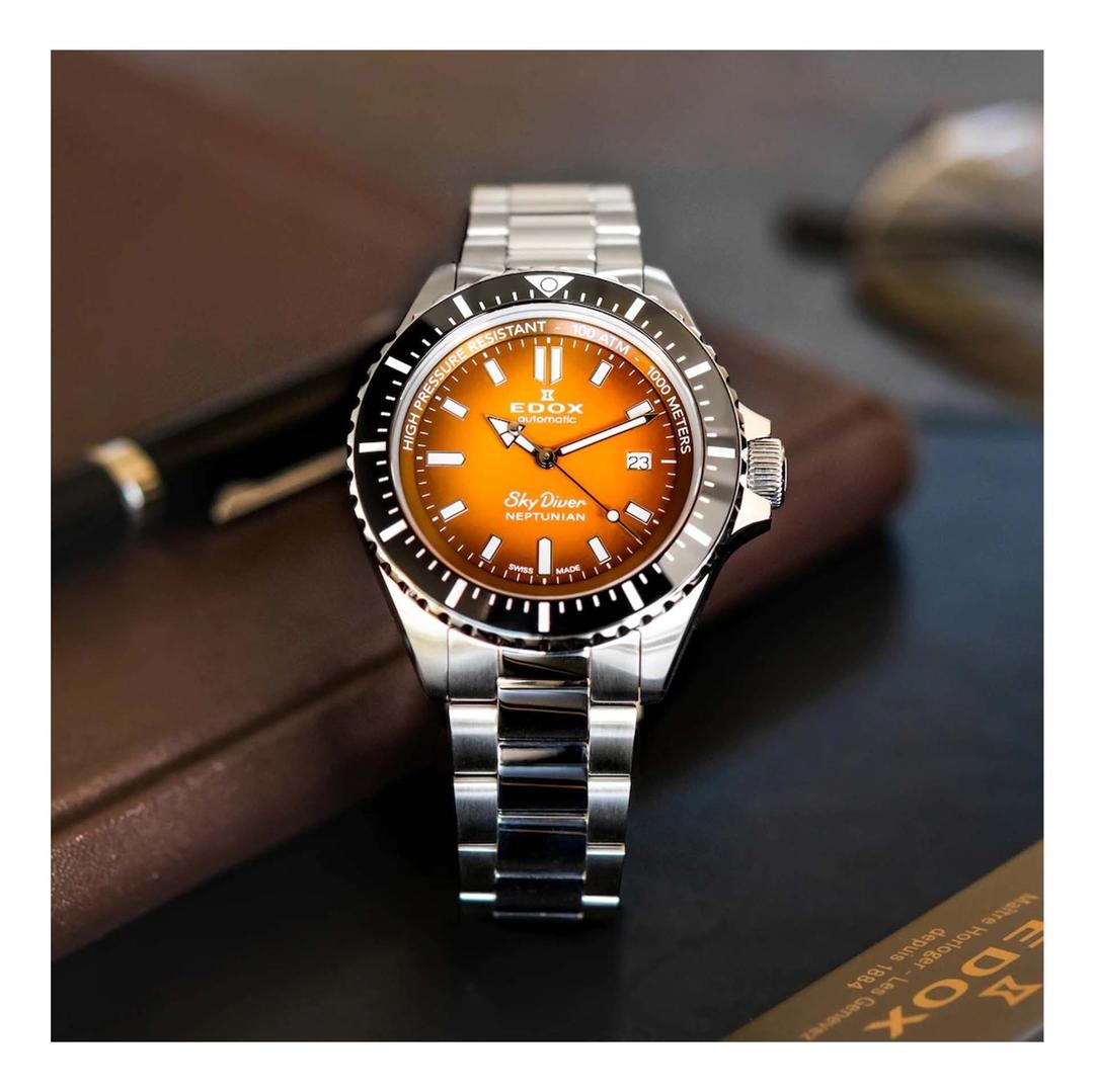 در کل، Edox Skydiver Neptunian 801203NMODN یک انتخاب بسیار قدرتمند برای کسانی است که به ساعتی نیاز دارند که در عین داشتن طراحی لوکس و قابلتوجه، توانایی فنی واقعی برای غواصی عمیق را نیز داشته باشد. این مدل نمایانگر ترکیب هنر ساعتسازی سوئیسی و عملکرد غواصی سطح حرفهای است — ساعتی که نه فقط برای نشان دادن زمان، بلکه برای تحمل شرایط دشوار و ادامه عملکرد در عمقهای زیاد ساخته شده است.