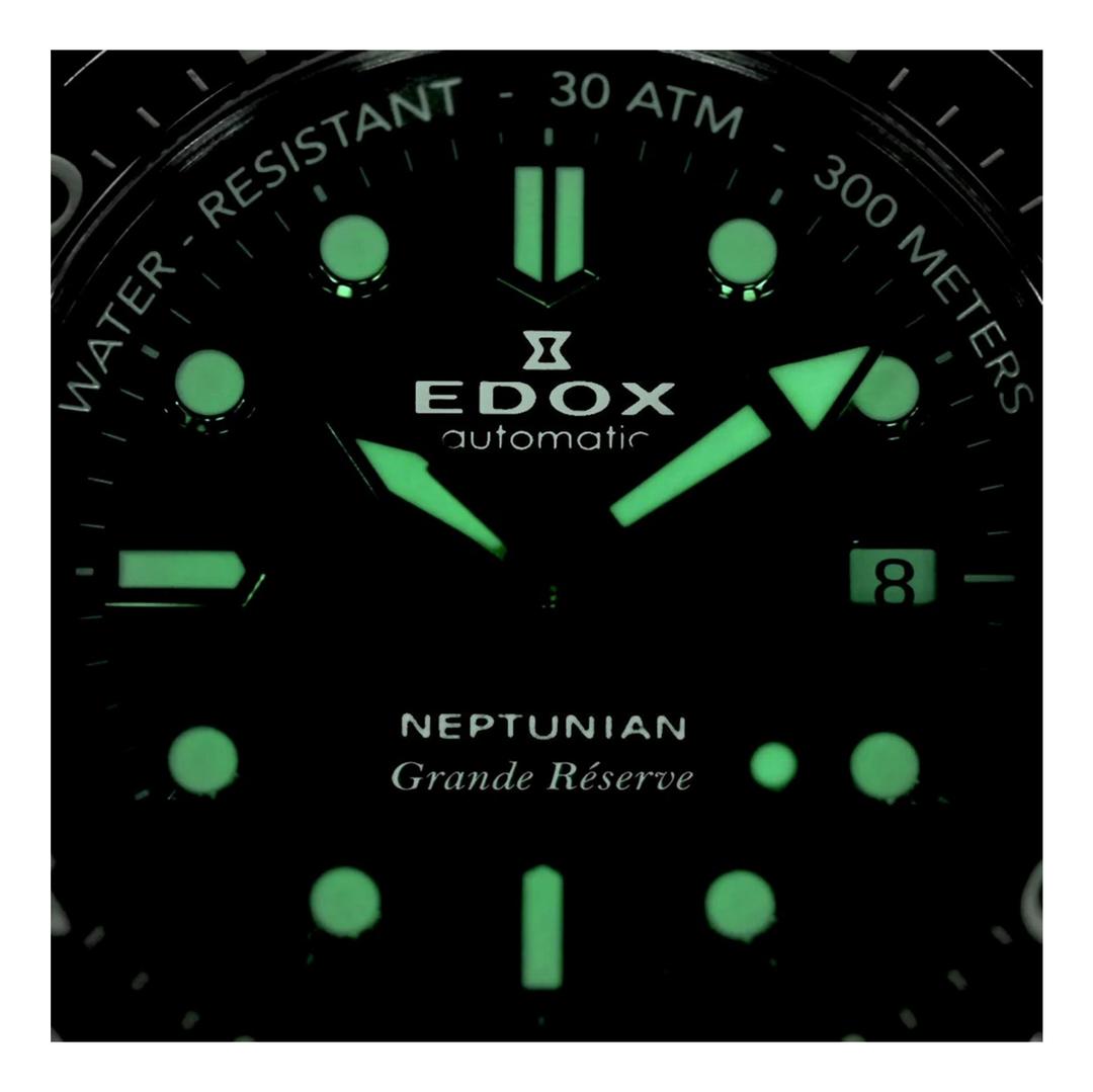 موتور این ساعت یک کالیبر Edox 808 (مبتنی بر La Joux-Perret G100) است که ذخیره نیرو بسیار قابل توجه ۶۸ ساعت ارائه میدهد.این یعنی میتوانی برای دو روز کامل ساعت را از مچ برداری و دوباره استفاده کنی بدون اینکه آن را کوک کنی. عقربهها و ایندکسها با Super-LumiNova X1 پوشش داده شدهاند تا حتی در نور خیلی کم (یا زیر آب) خوانایی عالی داشته باشند.