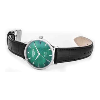 - این ساعت دارای صفحهای سبز رنگ از جنس مادرمروارید است و یک الماس در موقعیت عدد ۱۲ قرار دارد.