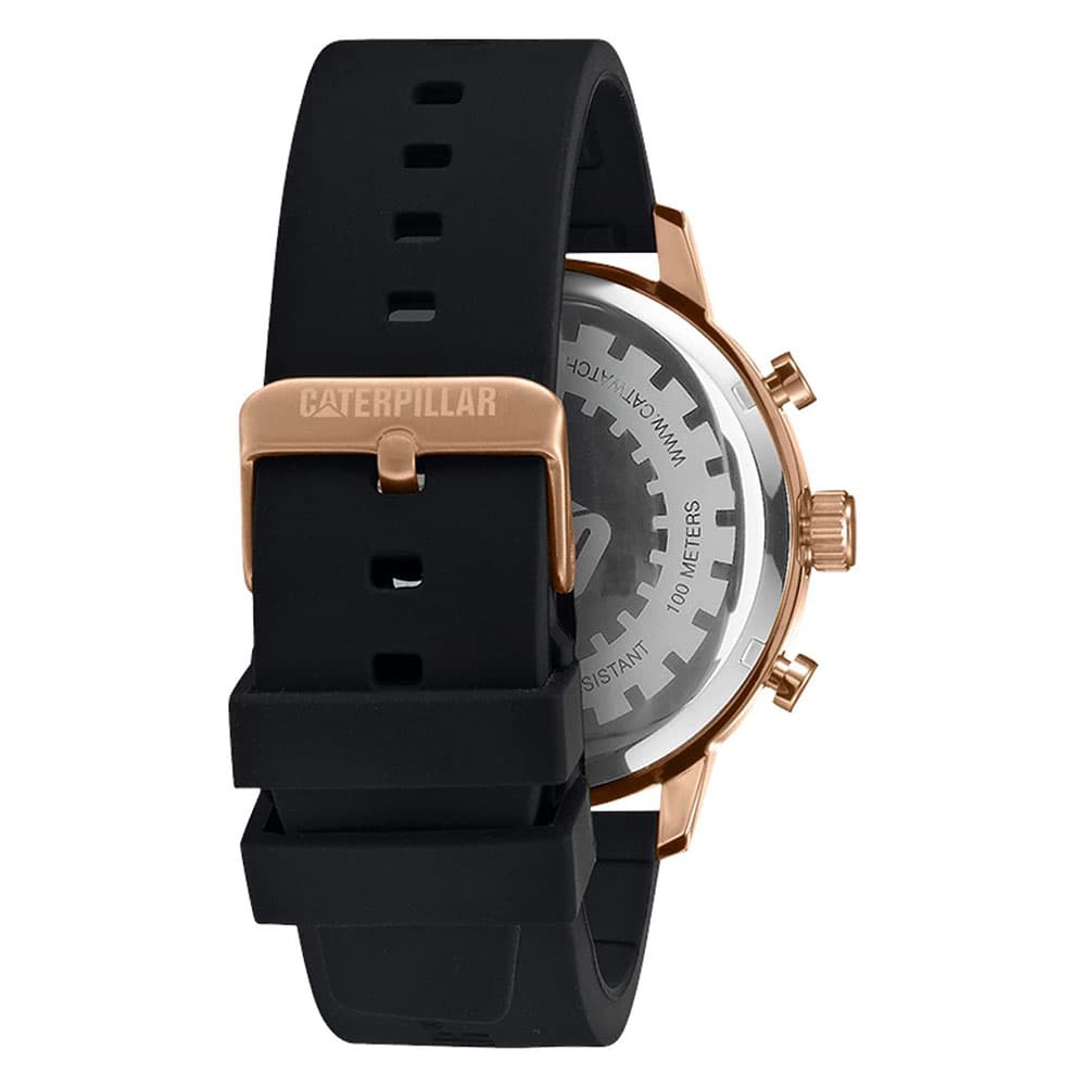 کترپیلار مردانه مدل AK.199.21.129 از سری "Sail" این برند آمریکایی، ترکیبی از طراحی اسپرت و عملکرد حرفهای را ارائه میدهد و مناسب استفاده روزمره و فعالیتهای خارج از منزل است. این ساعت مچی مردانه با رنگبندی مشکی و رزگلد، قاب استیل ضدزنگ و بند سیلیکونی مشکی، ظاهری مدرن و لوکس دارد که هماهنگی خوبی با استایلهای اسپرت و کژوال ایجاد میکند. بند سیلیکونی سبک و انعطافپذیر، احساس راحتی روی مچ را تضمین میکند و ساعت با وزن حدود ۱۰۰ گرم، خوشدست و راحت است.