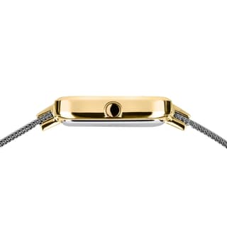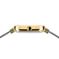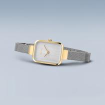 مدل Bering Classic 14520-010 یک ساعت زیبا و ظریف است که با سادگی و بدنه مستطیلی خود، جلبتوجه میکند. بدنه استیل به ابعاد 20 میلیمتر، طلاییرنگ است. بند حصیری نقرهای که از استیل ضدزنگ ساخته شده است، ظاهری شکیل روی مچ ایجاد میکند. اندازه بند را میتوان بهراحتی توسط گیره کشویی تنظیم کرد. این ساعت زنانه برند سبک مدرن را با مینیمالیسم معاصر ترکیب میکند.