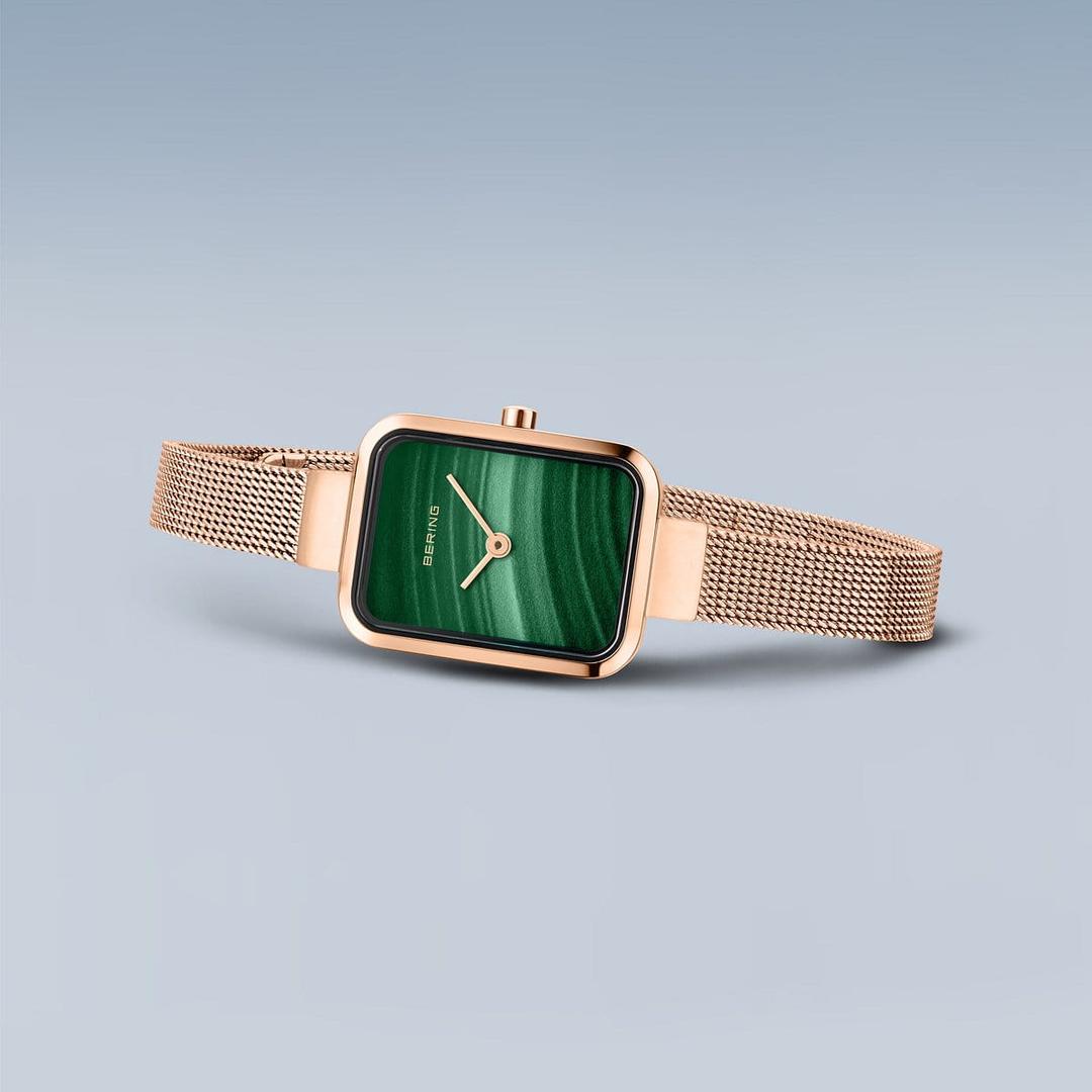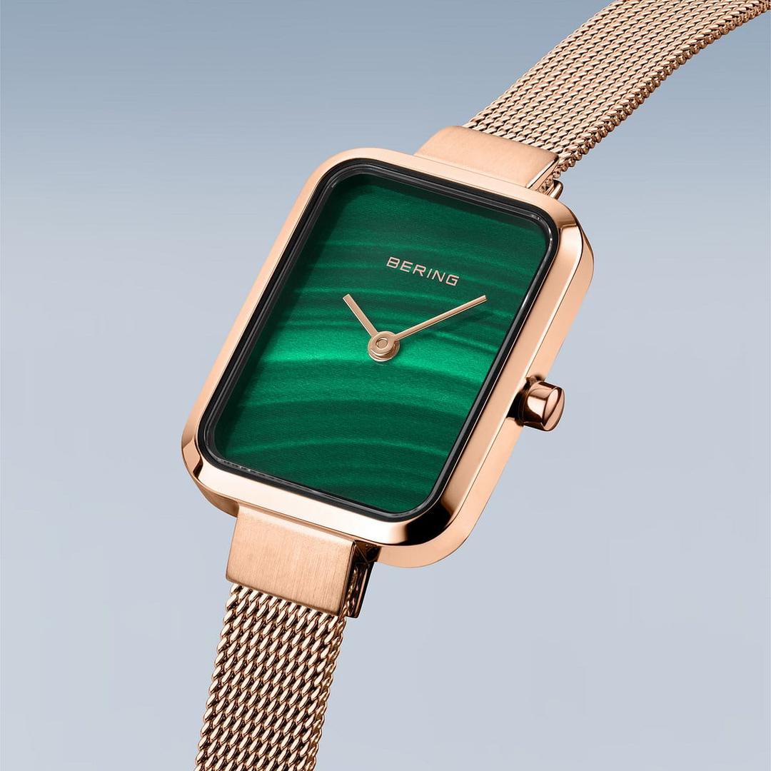 ساعت زنانه برند Bering 14520-368 یک اکسسوری زیبا از سری کلاسیک 20 میلیمتری است. اگر به دنبال انتخابی شیک با ظاهر کلاسیک هستید، این مدل انتخاب مناسبی برای شماست. محصول دارای یک قاب رز گلد مستطیلی است که از استیل ضدزنگ ساخته شده که به لطف سطح صیقلی خود، ظاهری چشمنواز دارد. قاب 20 میلیمتر عرض و 6 میلیمتر ارتفاع دارد و برای مچ دست ظریف بانوان مناسب است. بند حصیری رز گلد تا حداکثر 195 میلیمتر دور مچ قابلاستفاده است.