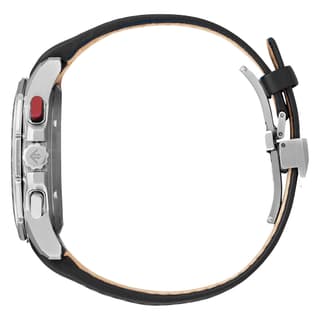 یک ساعت با استایل مردانه با نمایشگر چند منظوره به رنگ مشکی،قاب نقره ای و بند مشکی ساخته شده با استیل 318 و آبکاری یونی که به هیچ عنوان دچار پوسیدگی نمیشود