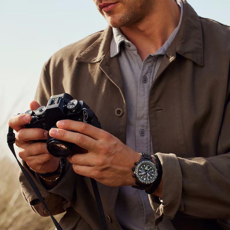 صد سال پیش، سیتیزن دنیای ساعتسازی را برای همیشه متحول کرد و اولین ساعت جیبی خود را معرفی نمود. امروز، این میراث با معرفی نسخهی محدود Promaster Geo Trekker ادامه پیدا میکند. این ساعت بینظیر به سامانهی تنظیم زمان رادیویی جهانی مجهز شده تا دقت فوقالعادهای ارائه دهد. طراحی صفحهی آن از لایههای زمینشناسی پوستهی زمین الهام گرفته شده و با استفاده از مواد بازیافتی و جوهر رنگی ساختاری توسعهیافته توسط شرکت FUJIFILM Corp. ساخته شده است. این جوهر نوآورانه، طیفی از رنگها و سایهها را با جلوهی عمیق و منحصربهفرد از طریق بازتاب نور ایجاد میکند، در حالی که فناوری Eco-Drive از نور بهعنوان منبع انرژی پاک برای نمایش زمان استفاده میکند.