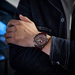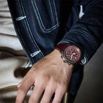 یک ساعت با استایل مردانه با نمایشگر کرنوگراف به رنگ عنابی و قاب با رنگ دودی ساخته شده با استیل 318 که به هیچ عنوان دچار پوسیدگی نمیشود