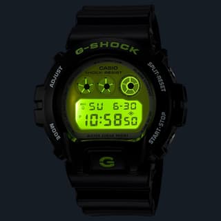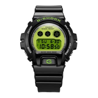 مدل DW-6900RCS-1D ترکیبی از اصالت کلاسیک و انرژی مدرن است. طراحی آن با الهام از نسخههای دهه ۹۰، بدنهای از رزین مشکی براق دارد که در تضاد زیبایی با جزئیات نقرهای و نمایشگر دیجیتال سبز رنگ قرار گرفته است. بزل این مدل با فرم گرد و برجسته، حس استحکام و قدرت را تداعی میکند و در کنار دکمههای فلزی براق با پرداخت دقیق، جلوهای اسپرت و صنعتی به ساعت میدهد. فرم سهچراغی معروف روی صفحه که امضای DW-6900 محسوب میشود، هویت جیشاک را کاملاً حفظ کرده است.