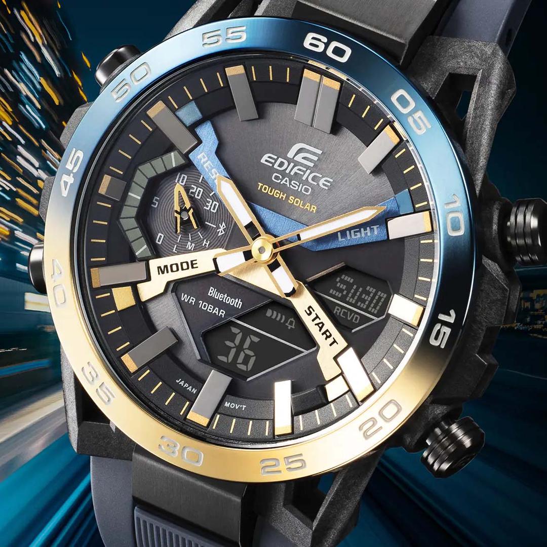 این مدل با استفاده از اپلیکیشن Casio Watches، تنظیمات مختلفی مانند زمان جهانی، تایمر، آلارم و ذخیرهسازی دادههای کرنومتر را امکانپذیر میسازد. با طراحی الهامگرفته از دنیای موتور اسپرت و رنگبندی خاص، این مدل در سری Nighttime Drive قرار دارد که نمایانگر هیجان رانندگی شبانه است. ساعت casio edifice معرفیشده مناسب آقایان فعال، علاقهمند به ورزش، فناوری و استایل اسپرت و کسانی است که دقت و دوام را میپسندند.