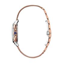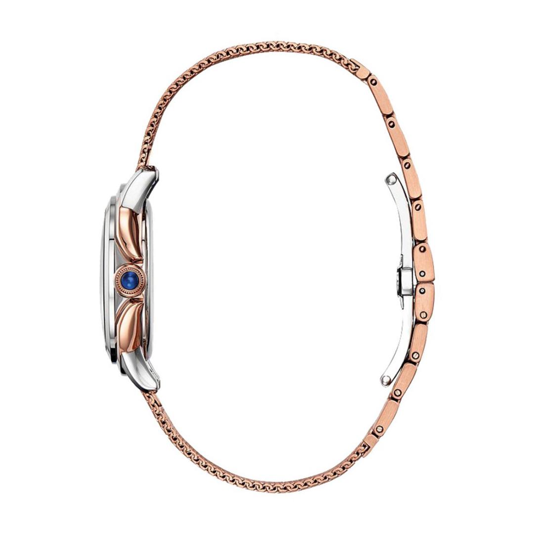 ساعت مچی زنانه سیتیزن مدل EM0796-75D با بهرهگیری از فناوری Eco-Drive، انرژی خود را از نور تامین کرده و نیازی به تعویض باتری ندارد. بدنه و بند تعبیه شده از جنس استیل ضدزنگ با پوشش جذاب رزگلد ساخته شده است. صفحه سفید این ساعت زنانه برند با نشانگرهای ظریف نگین و عقربههای همرنگ بدنه طراحی شده که جلوهای زنانه و لوکس به آن بخشیده است.