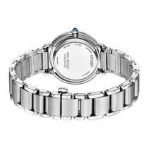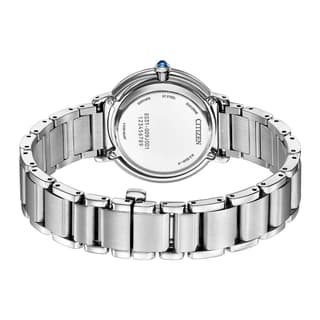 قاب استیل نقرهای ساعت با طراحی گرد و زنانه، 31 میلیمتر قطر و حدود 8 میلیمتر ضخامت دارد. بند استیل ضد زنگ با حلقههای پیوسته و ظاهری شیک از قفل کلیپسی ضامندار برای امنیت بیشتر برخوردار است. مقاومت ساعت citizen معرفی شده در برابر آب تا عمق 50 متر بوده که برای استفاده روزمره و تماس با آب مناسب است. از سایر ویژگیهای این مدل میتوان به نشانگر کمبود شارژ و جلوگیری از شارژ بیش از حد اشاره کرد.