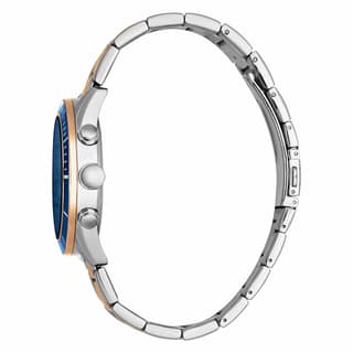 این ساعت با قطر صفحه ی سزمه ای 43 میلی متر و استیل ضد زنگ نقره ای و طلایی و طراحی شده که بی انتها شیک و بروز به نظر برسید، این ساعت تا عمق 100 متر ضد آب کامل و جنس شیشه آن کریستال معدنی است.