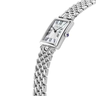 ساعت FC-200MPW2AC6B با طراحی مستطیلی و ابعاد جمعوجور، انتخابی ایدهآل برای بانوانی است که به دنبال ساعتی با ظاهری کلاسیک و در عین حال مدرن هستند. قاب نقرهای از استیل ضدزنگ با پرداخت براق، جلوهای لوکس و درخشان به ساعت بخشیده است. صفحه صدفی سفید با نقش حکاکیشدهی Clous de Paris، علاوه بر زیبایی، عمق و جذابیت بصری خاصی به آن افزوده است.
