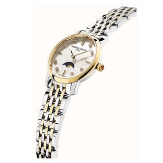 ساعت زنانه FC-206MPWD1S3B از کالکشن Slimline Moonphase فردریک کنستانت، جلوهای از هنر ساعتسازی سوئیسی و ظرافت زنانه است. این مدل طراحی شده تا علاوه بر نمایش زمان، پیچیدگی نمایش فاز ماه را با استایلی جذاب و مملو از جزئیات برجسته ارائه دهد.