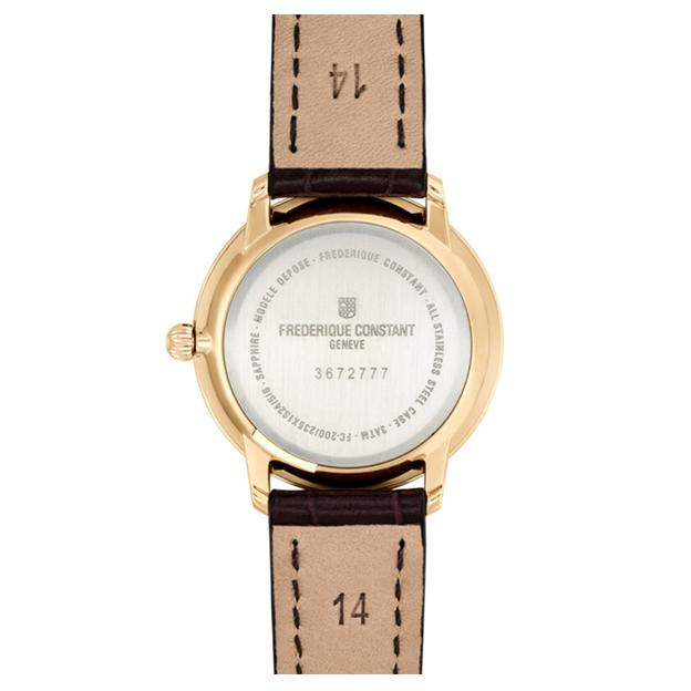 مدل FC-235M1S5 با طراحی مینیمالیستی و ابعاد جمعوجور، برای مچهای ظریفتر مناسب است. صفحه نقرهای با بافت گویلوشه و شاخصهای رومی، جلوهای کلاسیک به این ساعت بخشیده است. عقربههای ساعت و دقیقه مشکیرنگ و ثانیهشمار کوچک در ساعت ۶، خوانایی بالایی را فراهم میکنند.