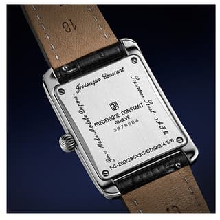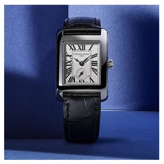 ساعت یونی سکس Frederique Constant FC-235S2C6 از کالکشن Classics Carrée Small Seconds فردریک کنستانت، ترکیبی از طراحی کلاسیک و عملکرد دقیق را ارائه میدهد. این مدل با قاب مستطیلی ۲۵ در ۳۶ میلیمتری از استیل ضدزنگ و پرداخت صیقلی، ظاهری شیک و در عین حال متین دارد که مناسب استفاده روزمره و موقعیتهای رسمی است.