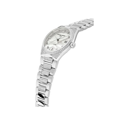 ساعت زنانه FC‑240MPWD2NHPV6B از کالکشن Highlife Ladies Quartz فردریک کنستانت، جلوهای از طراحی کلاسیک سوئیسی با جزئیات لوکس و عملکرد دقیق کوارتز است. قاب ۳۱ میلیمتری استیل ضدزنگ با پرداخت براق و مات، ظاهری شیک و هماهنگ با مچ زنان ایجاد کرده و تعادل کامل بین ظرافت و دوام را ارائه میدهد.