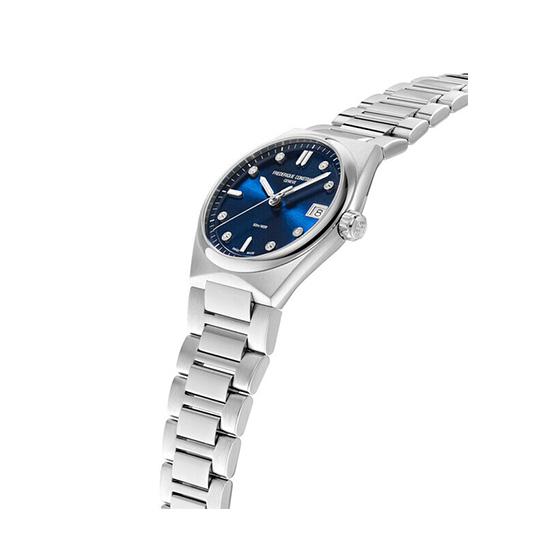 ساعت زنانه FC-240ND2NH6B از کالکشن Highlife Ladies Quartz فردریک کنستانت، نمونهای از ترکیب طراحی معاصر و قواعد کلاسیک ساعتسازی سوئیس است. ابعاد ۳۱ میلیمتری قاب آن، تعادل ایدهآلی میان حضور روی مچ و حس ظرافت زنانه فراهم میکند؛ نه بزرگ و نه خیلی ریز — حالتی که برای بانوانی که دنبال ساعتِ قابلاستفاده در روزمره و رسمی هستند بسیار مناسب است.