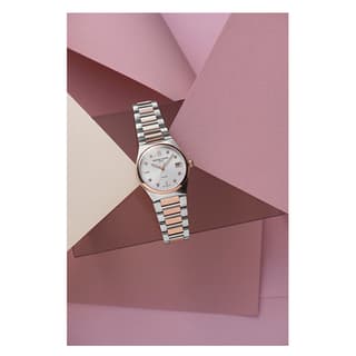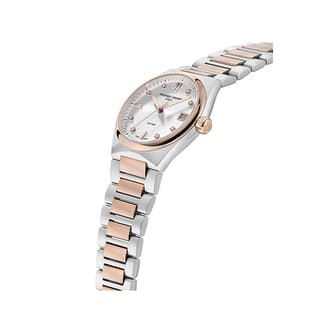 موومنت کوارتز کالیبر FC-240، دقت و عملکرد بیصدا را تضمین میکند. شیشه سافایر کریستال ضدخش با پوشش ضدانعکاس، وضوح بالایی را فراهم میآورد و از صفحه در برابر خط و خش محافظت میکند. بند استیل با روکش PVD رزگلد، علاوه بر زیبایی، استحکام بالایی دارد و با قفل تاشو با دکمه فشاری، امنیت مناسبی را فراهم میآورد. همچنین، بند اضافی لاستیکی صورتی قابل تعویض، امکان تغییر استایل ساعت را به کاربر میدهد.