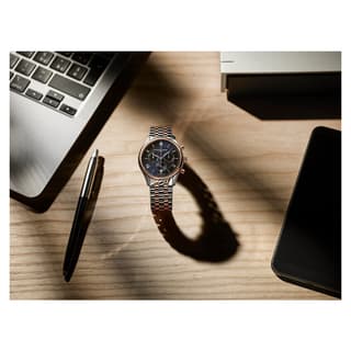 صفحه آبی مات با بافت گویلو و اعداد رومی چاپی جلوهای لوکس و مردانه به این ساعت بخشیده است. شیشه سافایر کریستال ضدخش محافظی مطمئن برای صفحه ساعت فراهم میکند.