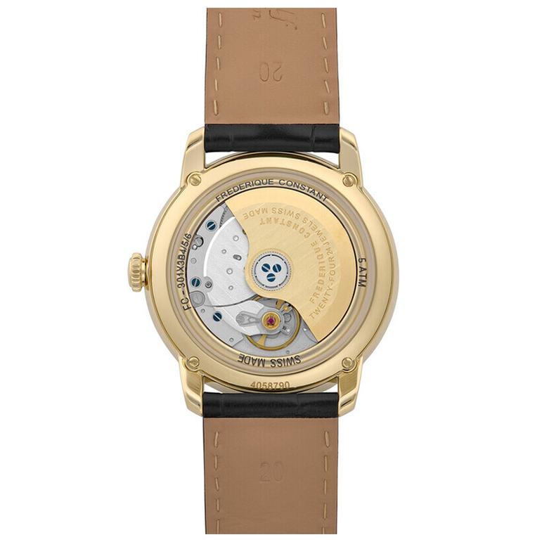 ساعت زنانه Frederique Constant FC‑301S3B5 از کالکشن Classics Premiere ترکیبی از طراحی کلاسیک سوئیسی و جزئیات لوکس است. قاب ۳۸.۵ میلیمتری با روکش طلایی PVD و ضخامت مناسب، ظاهری ظریف و در عین حال شیک دارد که روی مچ دست جلوهای متین و متمایز ایجاد میکند.