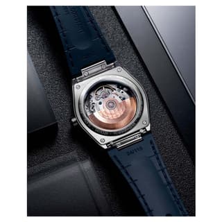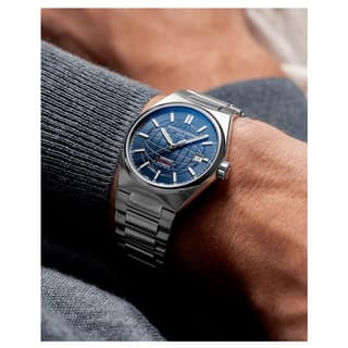 صفحه آبی با الگوی برجسته نقشه جهان، جلوهای خاص و متمایز به ساعت بخشیده است. عقربههای نقرهای با پوشش شبتاب و شاخصهای نقرهای با پوشش شبتاب، خوانایی عالی را در شرایط نوری مختلف فراهم میکنند. پنجره تاریخ در موقعیت ساعت ۳ بهطور ظریف طراحی شده تا کاربری ساعت کاملشود.