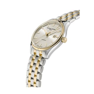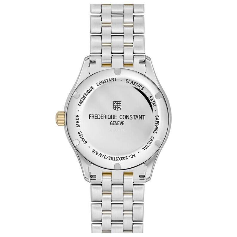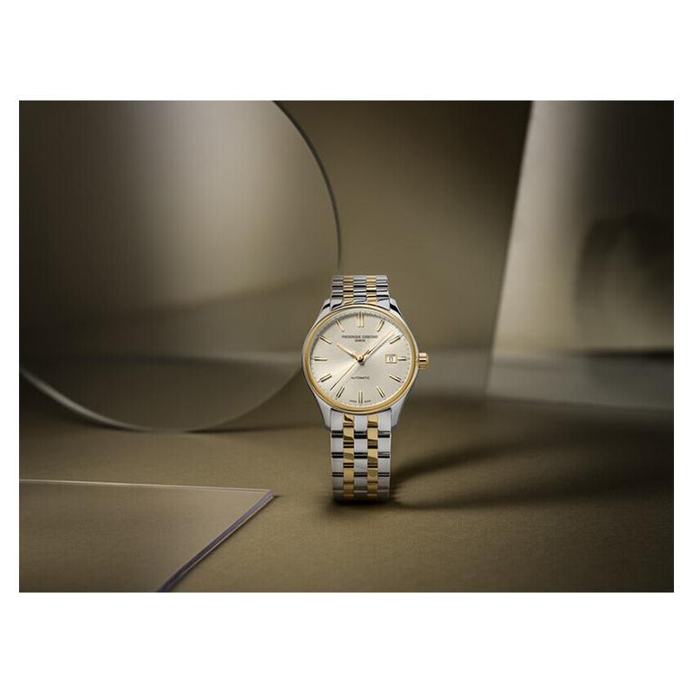 ساعت Frederique Constant FC-303C5B3B با طراحی کلاسیک از کالکشن Classics Index، ترکیبی از ظرافت و کارایی است. قاب ۴۰ میلیمتری با ترکیب رنگ استیل و طلایی-آبکاری شده، شخصیتی متمایز و شکیل دارد که هم برای محیط رسمی و هم برای استایل روزمره مناسب است.