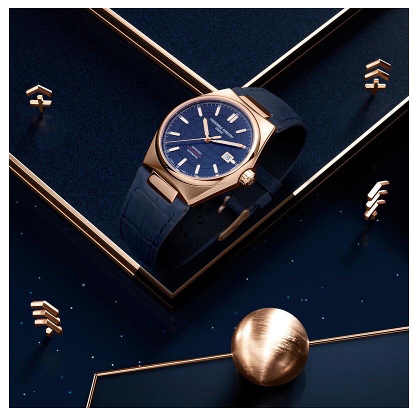 ساعت Frederique Constant FC-303N3NH4 از مجموعه Highlife Automatic COSC نمایانگر ترکیبی هوشمندانه از طراحی لوکس و عملکرد فنی برجسته است. قاب ۳۹ میلیمتری با ضخامت حدود ۱۰.۳۴ میلیمتر، اندازهای مناسب برای مردانی است که نه به ساعت بزرگ علاقه دارند و نه به مدلهای خیلی کوچک؛ این ابعاد حس شکیل بودن را حفظ میکند بدون آن که بر دست غالب شود. بدنه اصلی از استیل با آبکاری رزگلد است که جلوهای گرم و لوکس به ساعت میبخشد و با ترکیب پرداخت مات و براق به عمق بصری بیشتری دست یافته است.