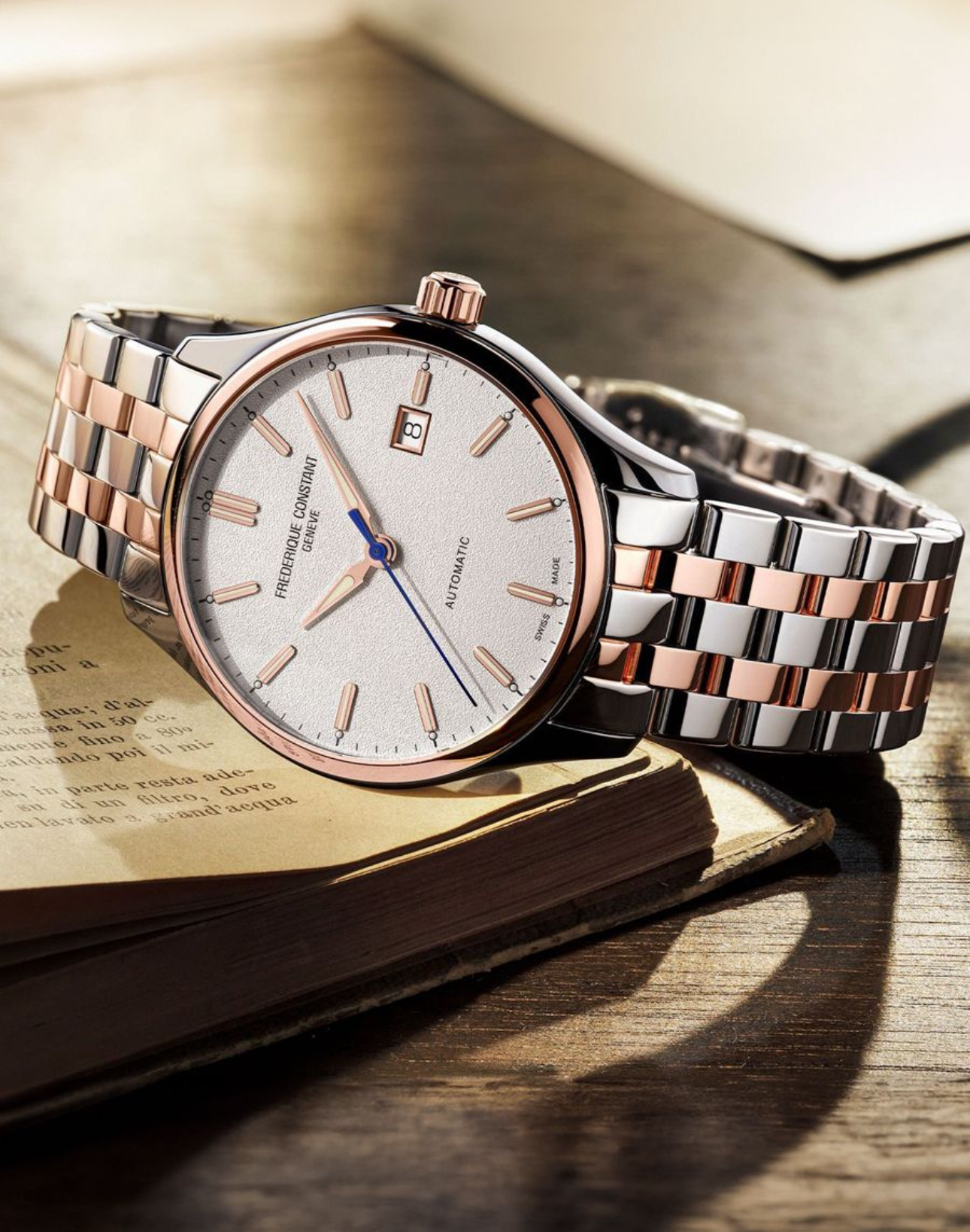مدل FC-303SS5B2B از کالکشن Classics Automatic برند سوئیسی Frederique Constant است که با طراحی مینیمالیستی و رنگهای کلاسیک، جذابیت خاصی دارد.