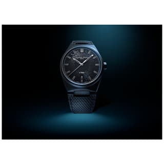 قاب ۳۹ میلیمتری استیل ضدزنگ با پوشش DLC مشکی، ترکیبی از ظرافت و دوام بالا ارائه میدهد و شیشه سافایر ضدخش با پوشش ضدانعکاس، وضوح و محافظت بینظیری از صفحه فراهم کرده است. صفحه مشکی با الگوی امواج صوتی و پوشش Super-LumiNova مشکی، جلوهای مدرن و منحصربهفرد ایجاد میکند.