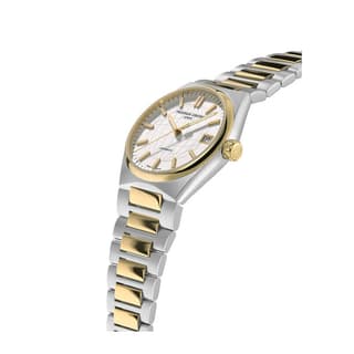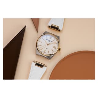 مدل FC-303V2NH3B از کالکشن Highlife Automatic برند سوئیسی Frederique Constant است که با طراحی دو رنگ (استیل ضدزنگ و پوشش طلای زرد) و ابعاد مناسب ۳۴ میلیمتری، جذابیت خاصی دارد. این مدل بهویژه برای بانوانی که به دنبال ترکیب طراحی کلاسیک و مدرن هستند، مناسب است.