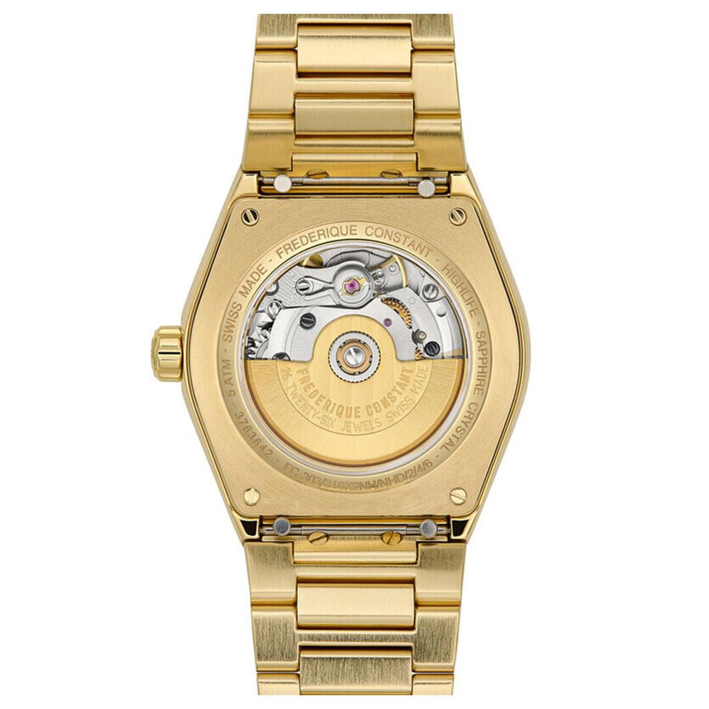 مدل FC-303VD2NH5B از کالکشن Highlife Ladies Automatic برند سوئیسی Frederique Constant است که با طراحی کلاسیک و مدرن، جذابیت خاصی دارد. این مدل با قطر ۳۴ میلیمتر و قاب استیل ضدزنگ با پوشش طلایی، ظاهری لوکس و شیک ارائه میدهد.