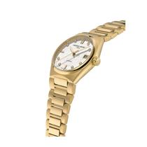 بند استیل ضدزنگ با پوشش طلایی PVD، راحتی و امنیت را در استفاده روزمره فراهم میکند. بند سیلیکونی سفید با سگک طلایی PVD بهعنوان بند اضافی، تنوع و گزینههای بیشتری برای استفاده فراهم میآورد. پشت قاب شیشهای با نمایی از موومنت، زیباییشناسی و جذابیت بصری ساعت را افزایش میدهد.