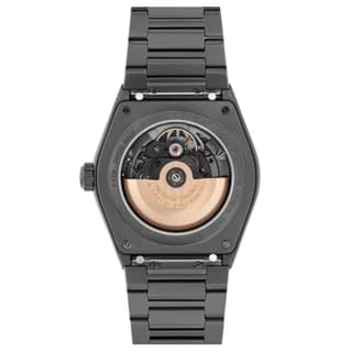 قاب ۴۱ میلیمتر با ضخامت ~۱۰.۸ میلیمتر تعادلی مناسب میان حضور و راحتی دارد. پوشش PVD تیتانیوم خاکستری روی استیل به ساعت ظاهری مدرنتر و مقاومتر بخشیده که از زنگزدگی و خراش محافظت میکند.