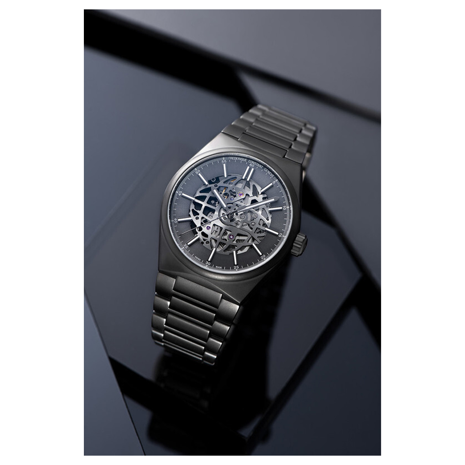 مدل FC-310DGSKT4TNH6B یکی از نسخههای خاص و منحصربهفرد کالکشن Highlife Automatic Skeleton است که طراحی ترکیبی از تکنیک اسکلتون و پوشش تیتانیوم خاکستری را به نمایش میگذارد. نمای اسکلتون صفحه امکان دیدن بخشی از اجزای داخلی موتور را فراهم کرده که حس فنی و اعماق مهندسی برای علاقهمندان ایجاد میکند.