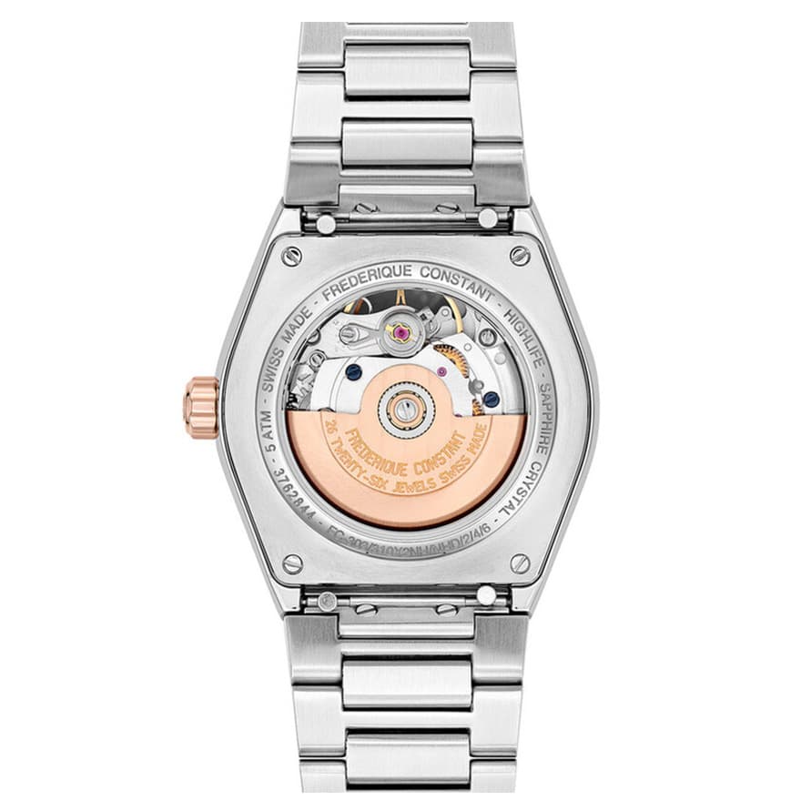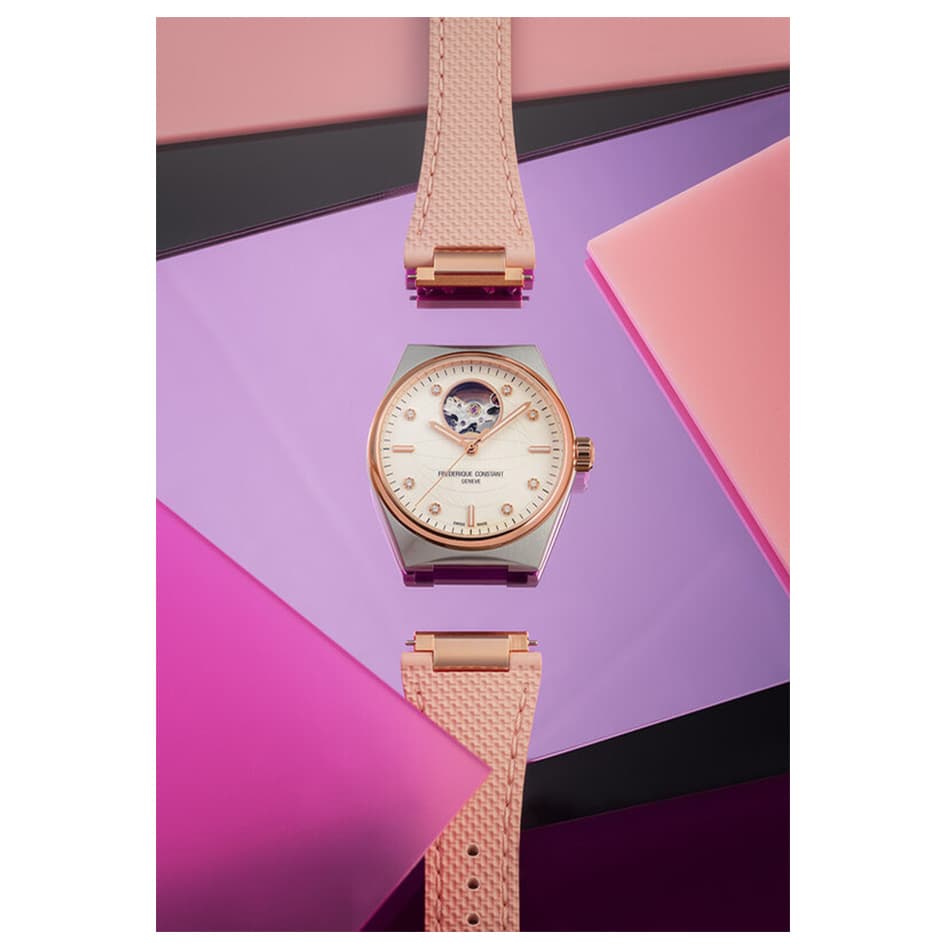 ساعت FC-310VD2NH2B از سری Highlife Ladies Automatic Heart Beat فردریک کنستانت، ترکیبی از ظرافت زنانه و دقت فنی را ارائه میدهد. ابعاد ۳۴ میلیمتری و ضخامت ~۹٫۸ میلیمتر آن باعث میشود روی مچ ظریف بهخوبی بنشیند بدون اینکه بزرگ و سنگین به نظر برسد.