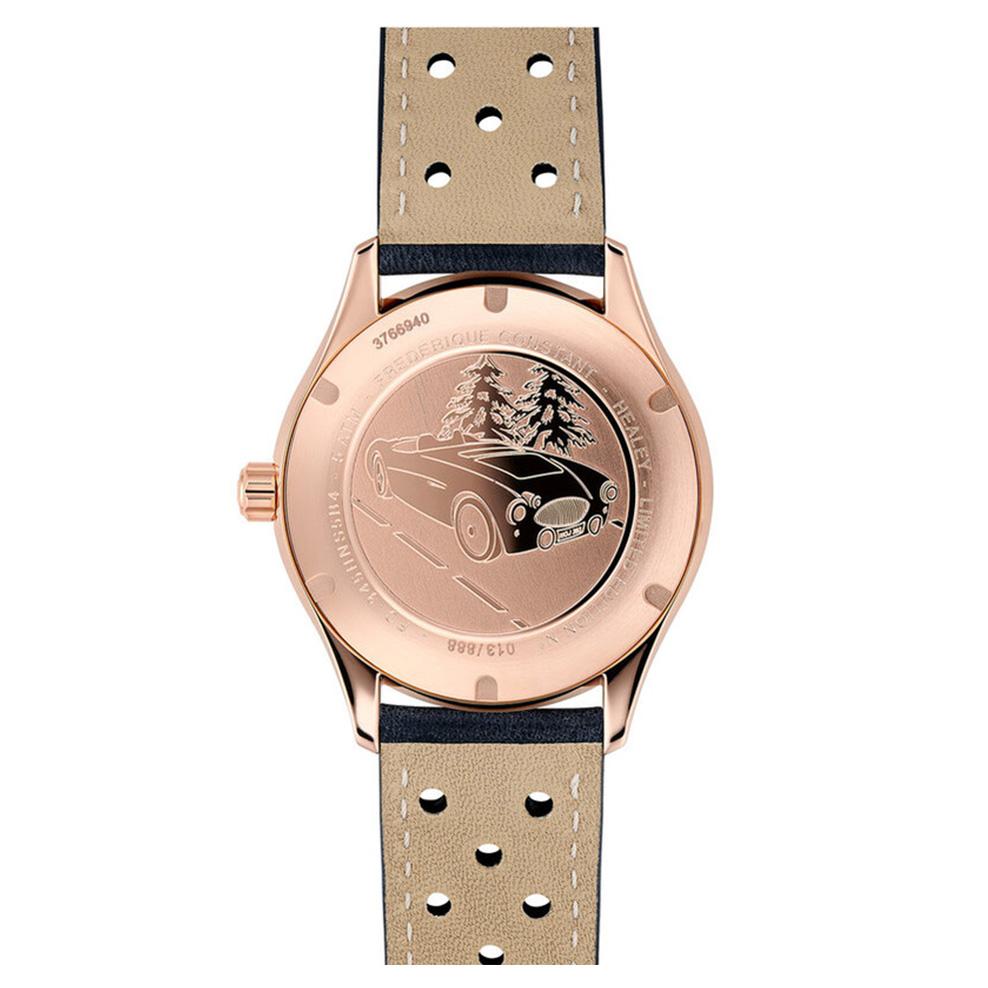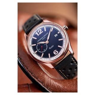 مدل FC-345HNS5B4 از مجموعه Vintage Rally Healey برند سوئیسی Frederique Constant، اقتباسی جذاب از عصر مسابقات اتومبیلرانی کلاسیک است. قطر ۴۰ میلیمتری قاب آن، در ترکیب با ضخامت ~۱۰ تا ۱۱ میلیمتر، توازن خوبی بین حضور برجسته و راحتی روی مچ ایجاد کرده است.