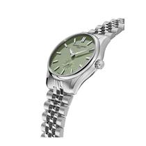 صفحه سبز این مدل، انتخابی کمتر متداول در میان ساعتهای Dress است؛ رنگی که نهتنها جلوهای متفاوت به ساعت میبخشد، بلکه با شاخصها و عقربههای فلزی تضادی زیبا ایجاد میکند. این انتخاب رنگ باعث میشود که ساعت در محیط رسمی و روزمره هر دو بدرخشد.
