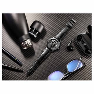 بند چرم مشکی با بافت آلگیتور و سگک پروانهای، ظاهری رسمی و باوقار به ساعت میبخشد که در ترکیب با قاب و صفحه، انتخابی بسیار مناسب برای موقعیتهای کاری، رسمی و سفرهای شهری بهحساب میآید. مقاومت ۵۰ متر با این که برای شنا یا فعالیتهای آبی شدید طراحی نشده، اما پوشش کافی برای شرایط روزمره مثل باران یا شستن دست فراهم میآورد.