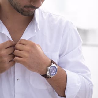 مقاومت آب تا ۵۰ متر (۱۰ بار) نشان میدهد که اگرچه ساعت بیشتر برای موقعیتهای رسمی و مسافرتی طراحی شده اما در شرایط روزمره نیز قابل استفاده است—بهویژه هنگامی که کاربر در سفر ممکن است با باران یا رطوبت مختصر مواجه شود. نکتهای که باید بدانید این است که ساعت برای ورزشهای آبی یا استفادههای سنگین طراحی نشده است.