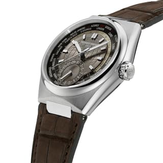 قاب ۴۱ میلیمتری، اندازهای متعادل دارد که هم روی مچ نمایان است و هم برای استفاده روزمره مناسب به نظر میرسد. انتخاب رنگ صفحه در طیف شکلاتی قهوهای همراه با نقش برجسته گوی جهانی، روح کالکشن Highlife را به خوبی منتقل میکند: ساعت برای کسانی که نگاهی فراتر از منطقه زمانی خود دارند طراحی شده است.