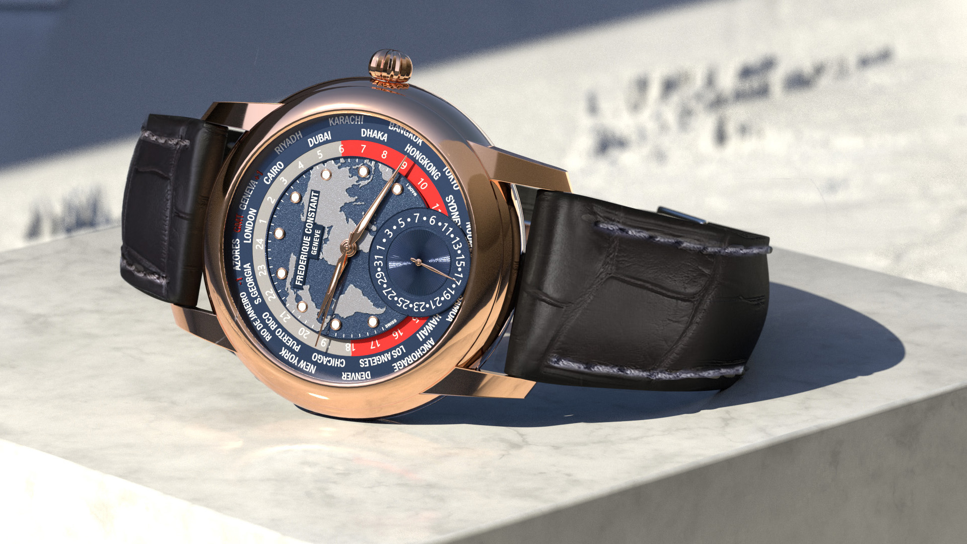 مدل FC‑718NRWM4H9 در حقیقت یک نسخه لوکس و کلکسیونی از ساعات Classic Worldtimer Manufacture است؛ این نسخه اولین باری است که در قاب طلای رز تولید شده و به همین خاطر ارزشی فراتر از نسخههای استیل دارد.