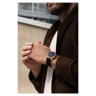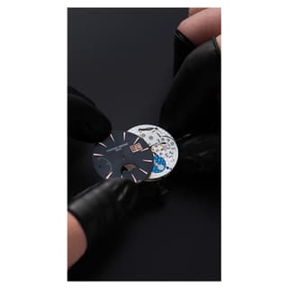 قاب ۴۰ میلیمتری با ضخامت ۱۲٫۱۹ میلیمتر، در عین اینکه ابعاد قابل استفاده روزانه را حفظ میکند، حضور برجستهای روی مچ دارد. طراحی قاب بدون دکمههای جانبی — همه عملکردها با تاج انجام میشود — ظاهری پاک و یکپارچه برای ساعت به ارمغان آورده است.