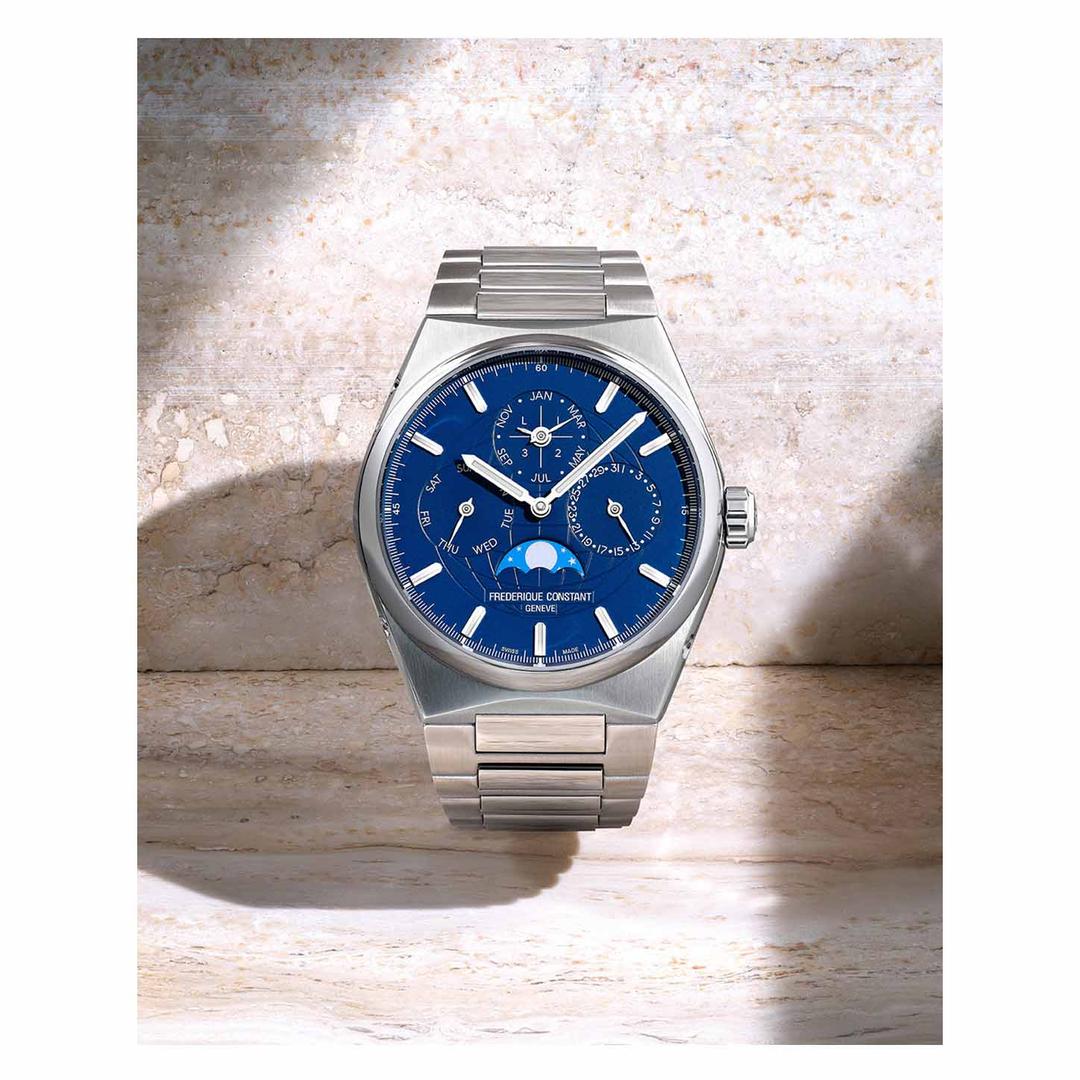 یکی از ویژگیهای برجسته این مدل، عملکرد تقویم ابدی (Perpetual Calendar) آن است؛ ساعتی که به طور خودکار تاریخ، روز هفته، ماه، سال کبیسه و فاز ماه را محاسبه میکند، بدون اینکه نیازی به تنظیم مداوم داشته باشد. این پیچیدگی معمولاً در ساعتهای رده بالا دیده میشود و نشاندهنده تسلط فردریک کنستانت بر مهندسی پیچیده است.