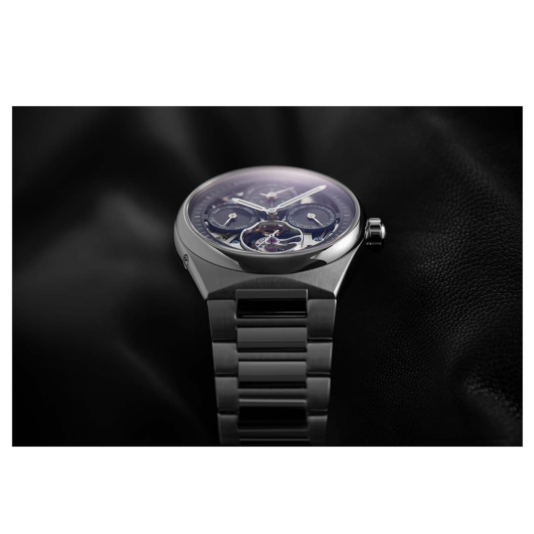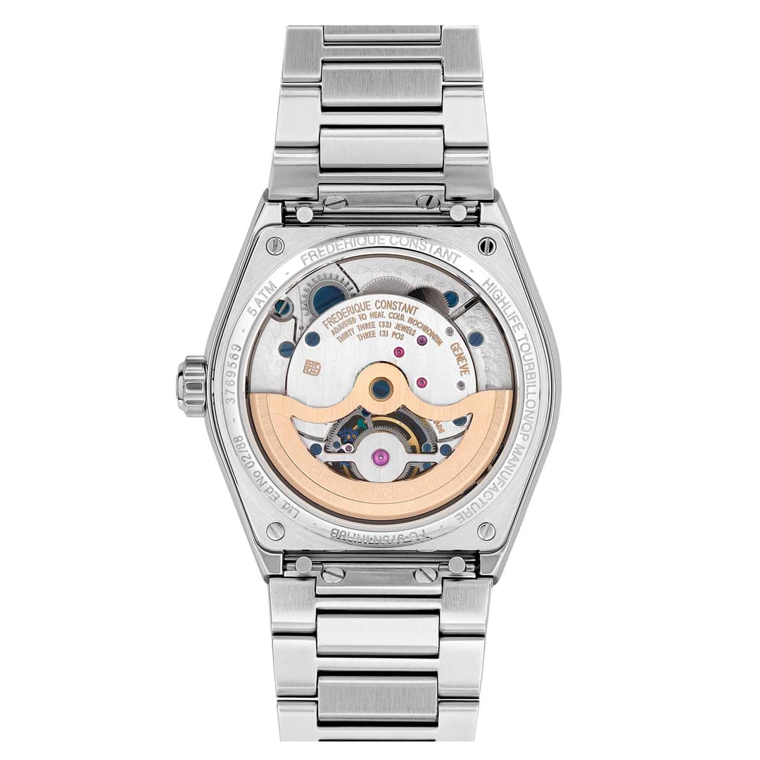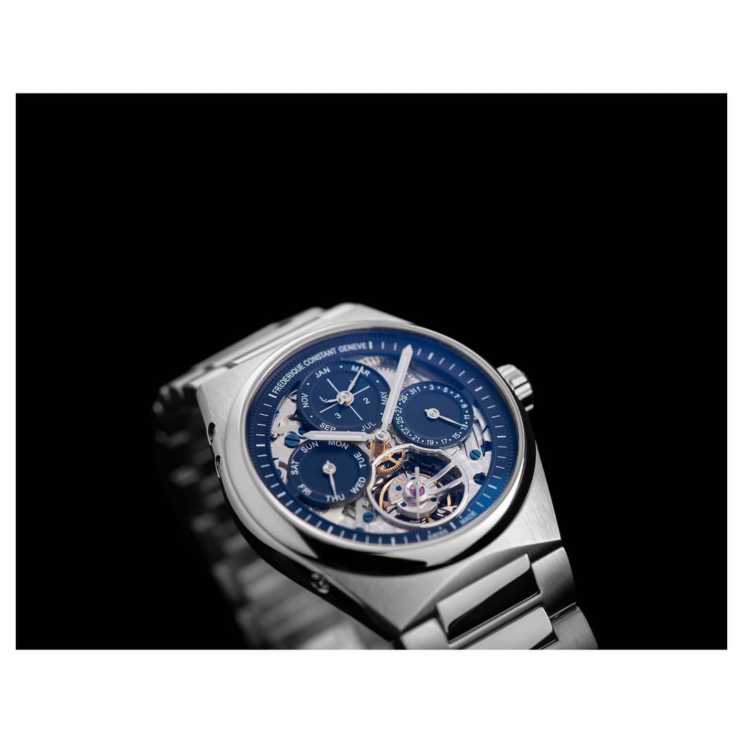 علاوه بر توربیلون، این ساعت از تقویم دائمی (Perpetual Calendar) بهره میبرد که روز، تاریخ، ماه و سال کبیسه را بهصورت خودکار نمایش میدهد و تا سال ۲۱۰۰ نیاز به تنظیم دستی ندارد. موومنت اتوماتیک FC-975 با دقت بالا و قابلیت مشاهده حرکت اجزای داخلی از طریق پشتبند شفاف، تجربهای تماماً مکانیکی و بینقص ارائه میکند.