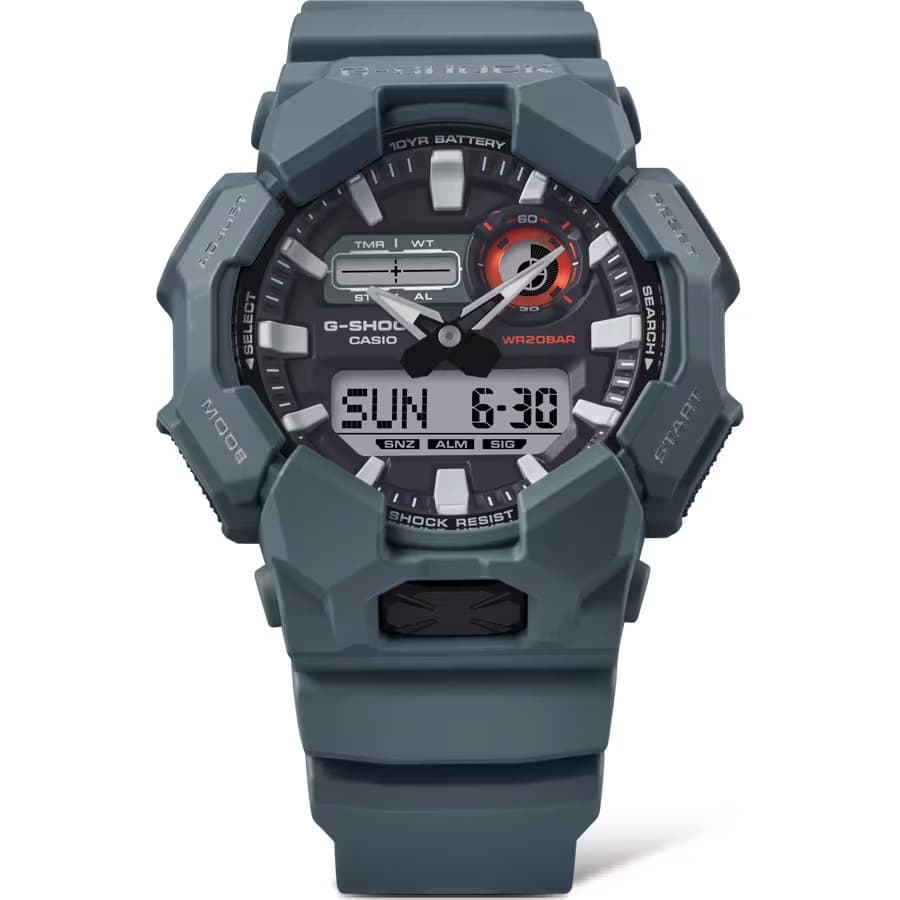 ساعت مچی کاسیو جی شاک مدل GA-010-2A، یک محصول آنالوگ - دیجیتال با طراحی شیک و اسپرت است که از ویژگیهای برجسته سری G-Shock، یعنی مقاومت در برابر ضربه و آب تا عمق 200 متر، بهره میبرد. ترکیب رنگی مشکی و آبی در این مدل، ظاهری پویا و جذاب ایجاد کرده است. GA-010-2A با بدنه و بند مشکی و جزئیات آبیرنگ در صفحهنمایش و برخی از نشانگرها، جلوهای خاص و پرانرژی دارد.