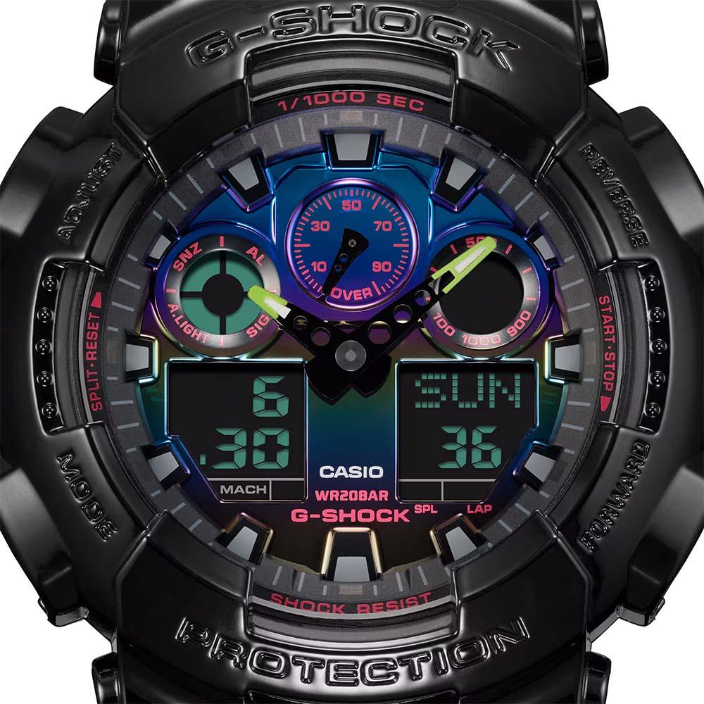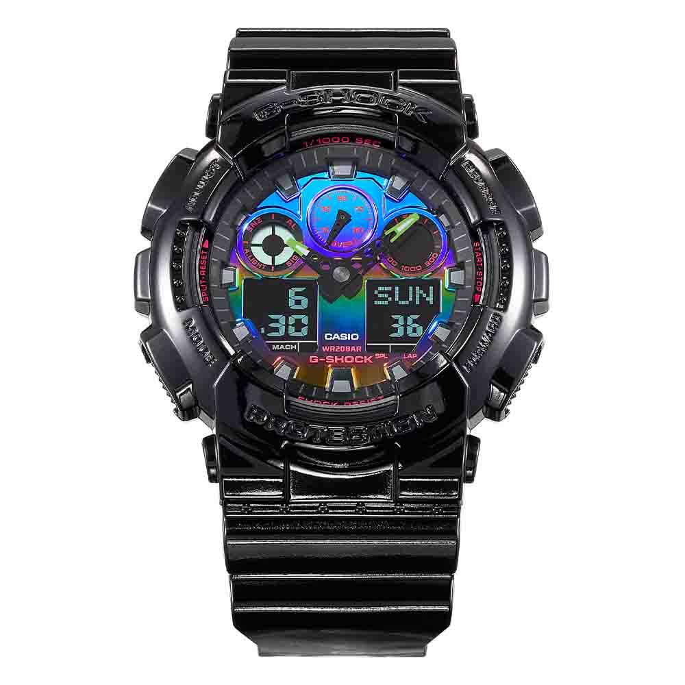 مدل GA-100RGB-1A از سری جی شاک، ساعتی دیجیتال و آنالوگ است که برای پاسخگویی به نیازهای زندگی مدرن طراحی شده است. با عملکرد دقیق ساعت جهانی، میتوانید بدون زحمت زمان را در 29 منطقه زمانی مختلف، از جمله 48 شهر، پیگیری کنید. ویژگی کرنومتر این ساعت بسیار دقیق است و به شما این امکان را میدهد که زمان سپری شده، دورها و زمانهای تقسیم شده را تا 1/1000 ثانیه اندازهگیری کنید.