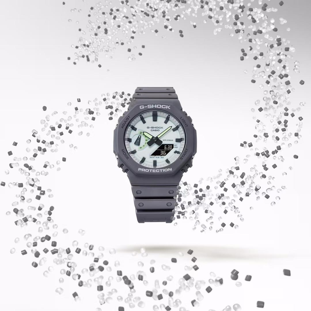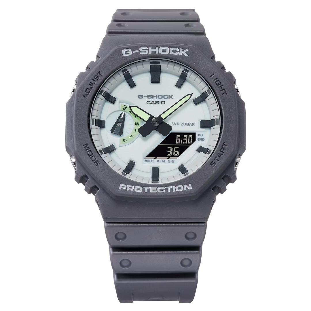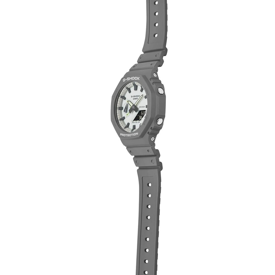کاسیو جی شاک مدل GA-2100HD-8A ترکیبی جسورانه از طراحی آیندهنگر و استحکام افسانهای است. این مدل کاسیو جی شاک با رنگ خاکستری مات و فرم هشتضلعی خاص، ظاهری مینیمال اما مدرن دارد که بهخوبی روحیهی ماجراجویانه و سبک امروزی را در هم میآمیزد. طراحی بدنه از رزین تقویتشده با کربن، نهتنها وزن آن را سبک کرده بلکه مقاومت آن را در برابر ضربه و شرایط سخت افزایش داده است.