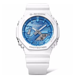 ساعت مچی کاسیو جی شاک مدل GA-2100WS-7A که اغلب با نام "کاسیوک" یا "اوکتاگون" نیز شناخته میشود، یک ساعت اسپرت و مدرن با طراحی هشتضلعی نمادین است. این مدل با ساختار مقاوم در برابر ضربه و محافظ هسته کربنی، دوام و استحکام بالایی را ارائه میدهد. رنگ سفید مات بدنه و بند آن ظاهری مینیمال و جذاب ایجاد کرده است.